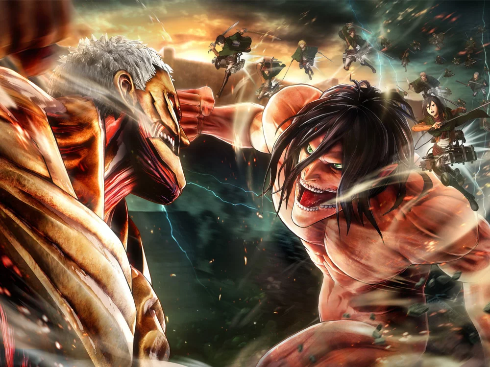 Уже многие годы человечество ведёт борьбу с титанами — огромными существами, которые не обладают особым интеллектом, зато едят людей и получают от этого удовольствие. После продолжительной борьбы остатки человечества построили высокую стену, окружившую страну людей, через которую титаны пройти не могли. С тех пор прошло сто лет, люди мирно живут под защитой стены. Но однажды подросток Эрэн и его сводная сестра Микаса становятся свидетелями страшного события — участок стены разрушается супертитаном, появившимся прямо из воздуха. Титаны нападают на город, и дети в ужасе видят, как один из монстров заживо съедает их мать. Эрэн клянётся, что убьёт всех титанов и отомстит за человечество.